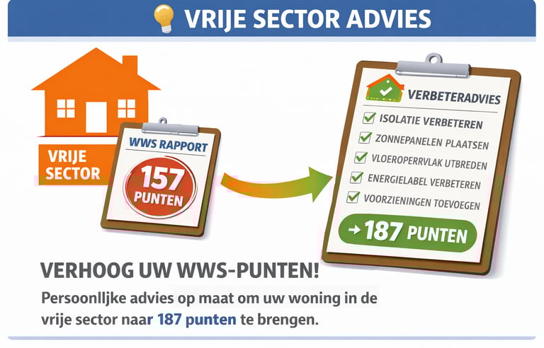 Wij analyseren de huidige puntentelling volgens het woningwaarderingsstelsel (WWS) en laten zien welke verbeteringen mogelijk zijn om het benodigde puntenaantal te behalen. Denk hierbij aan woonoppervlak, energielabel, voorzieningen en indeling van de woning. U ontvangt een praktisch en onderbouwd advies, inclusief concrete maatregelen en een realistische inschatting van het resultaat.