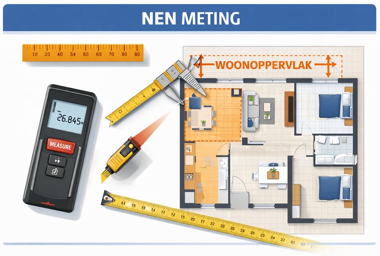 Een NEN-meting is een gestandaardiseerde manier om het gebruiksoppervlak van een woning vast te stellen volgens de Nederlandse norm (NEN 2580). Deze meetmethode zorgt voor een objectieve en betrouwbare berekening van het woonoppervlak en voorkomt onduidelijkheid of discussie achteraf.